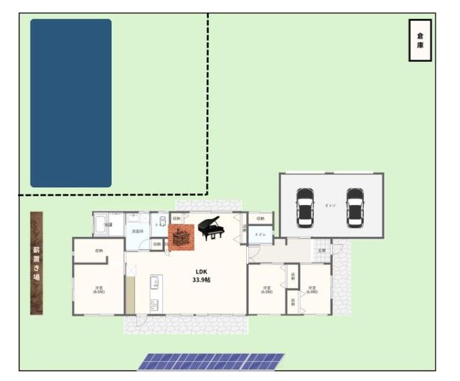 - 〇庭にはエコな太陽光パネルを設置