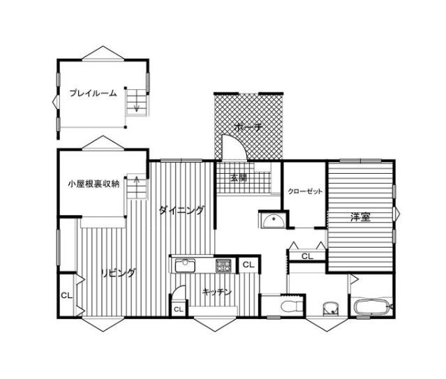 - 〇1LDKに加え、小屋根裏収納やプレイルーム付きで、実用性・快適性も◎