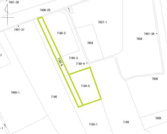 - 旗竿地/イエローゾーン/特定用途制限地域/下水道引込必要/敷地内電柱あり