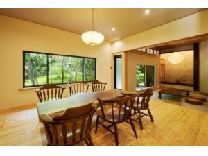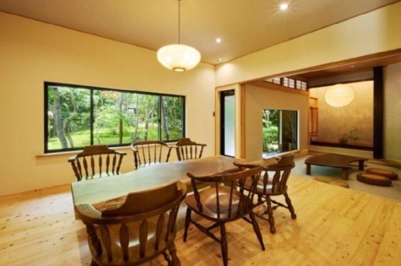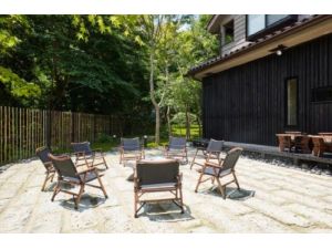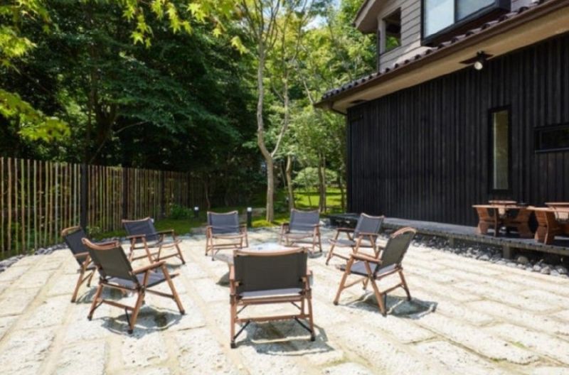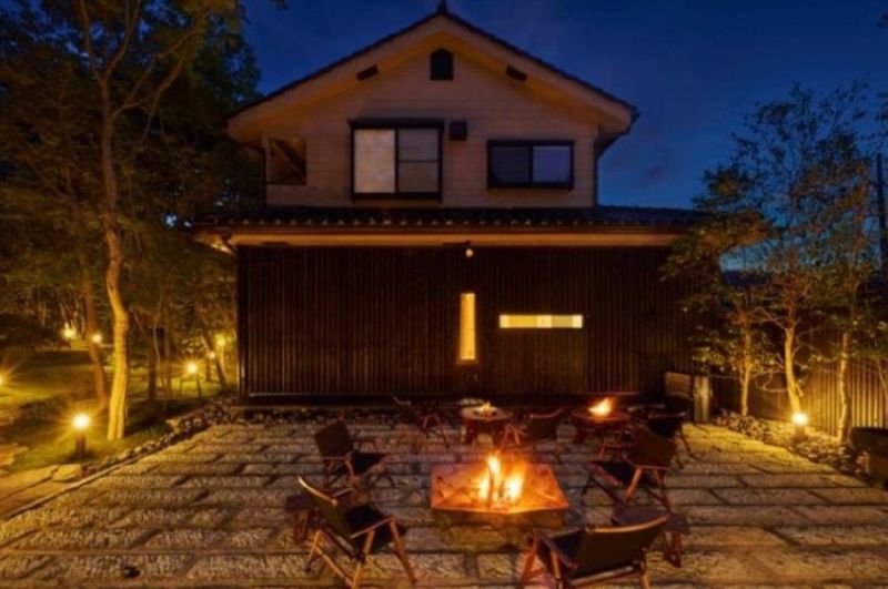 1階には庭園を眺めるとことができる和モダンな土間があり、その他、焚き火スペース、バーベキュースペースも完備されています。