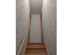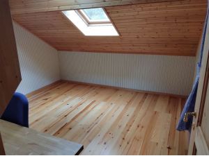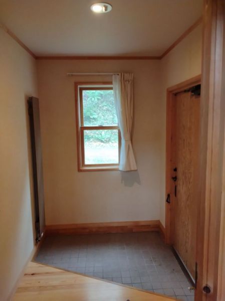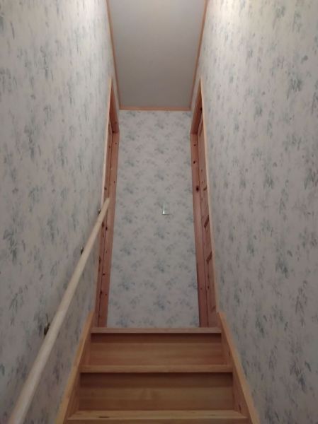 玄関からのアクセスも良好です。天窓はVelux社製で、自然光が優しく差し込む心地よい空間となっています。