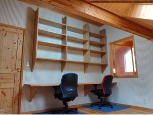 | その他設備 | スウェーデン製レッドパイン木材による内装 建物全体がパネルヒーティング仕様 サイディング壁 特注の備え付け本棚・机 ウッドデッキ 天窓(Velux社製) IHコンロ |