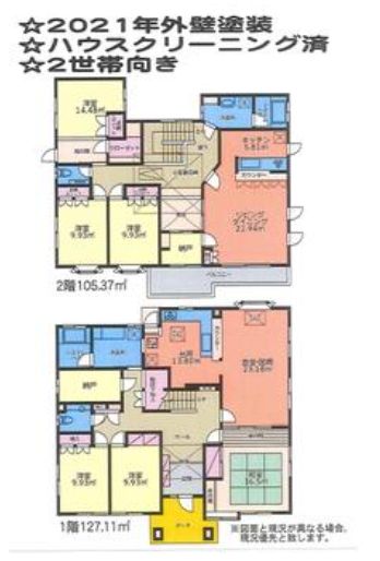 - 建物面積は200平米越えの6LDK・二世帯向きの大型住宅