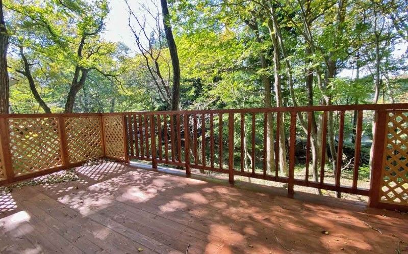 広々としたデッキでは森林浴を楽しめ、日常の喧騒を忘れてゆったりとした時間を過ごせます。
