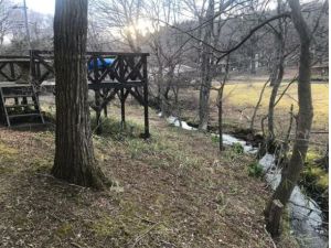 敷地内にはウッドデッキテラスが設けられており、水のせせらぎと四季折々の景色を身近に感じながら、ゆったりとした時間をお過ごしいただけます。