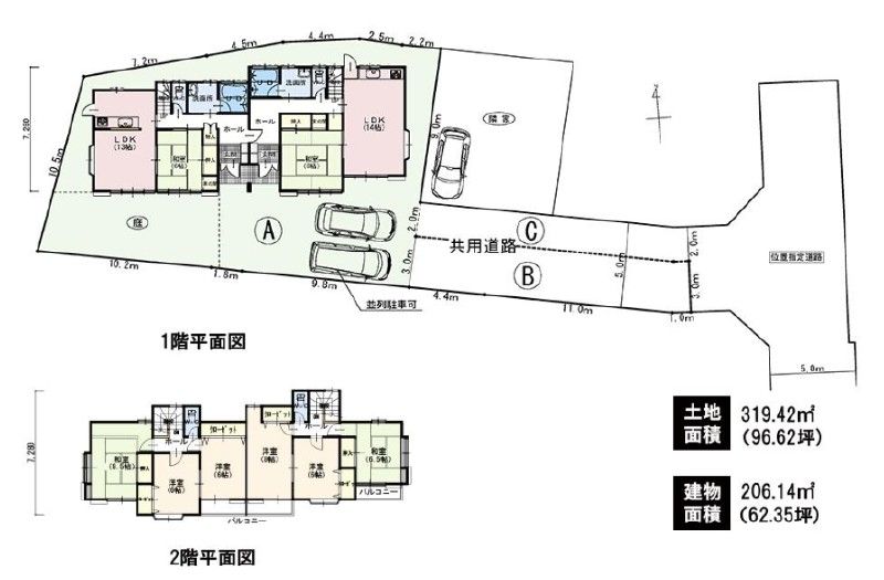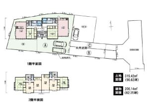 敷地面積は約96.62坪、建物面積は約62.35坪とゆとりのある設計。