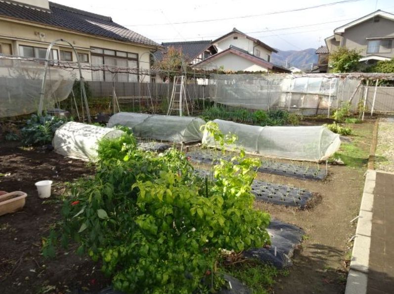 さらに敷地内には約100平米の家庭菜園スペースを備え、りんご・桃・梨・ぶどうをはじめ多彩な果樹や野菜を栽培できます。(離れの東側にも菜園があります)