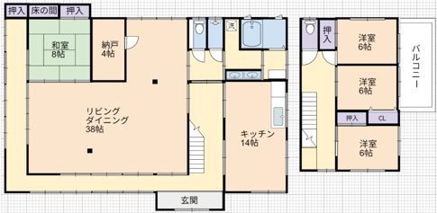 | 設備2 | トイレ2か所以上 温水洗浄便座 納戸 収納スペース バルコニー サウナ 床の間 駐車2台以上 |