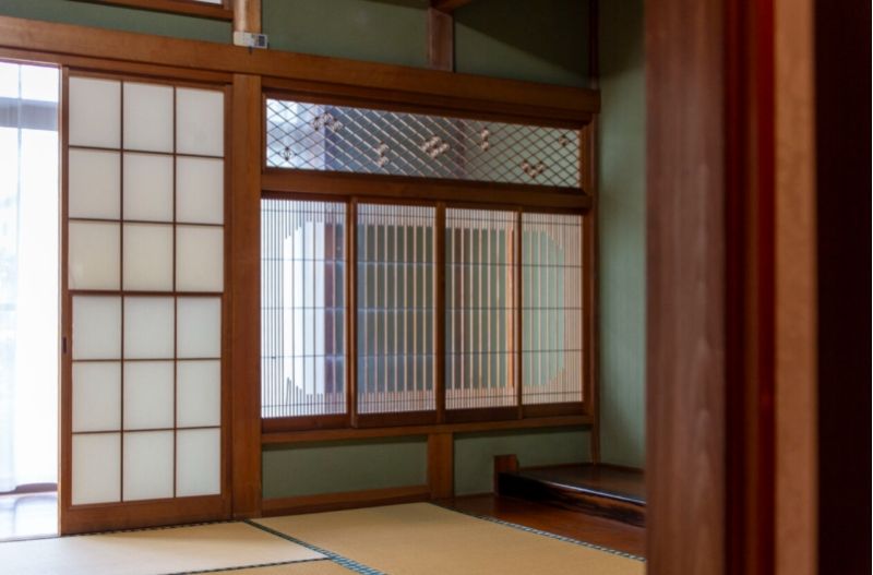 - 匠の技が光る和室の細工の美しい建具の数々、広いお庭付き