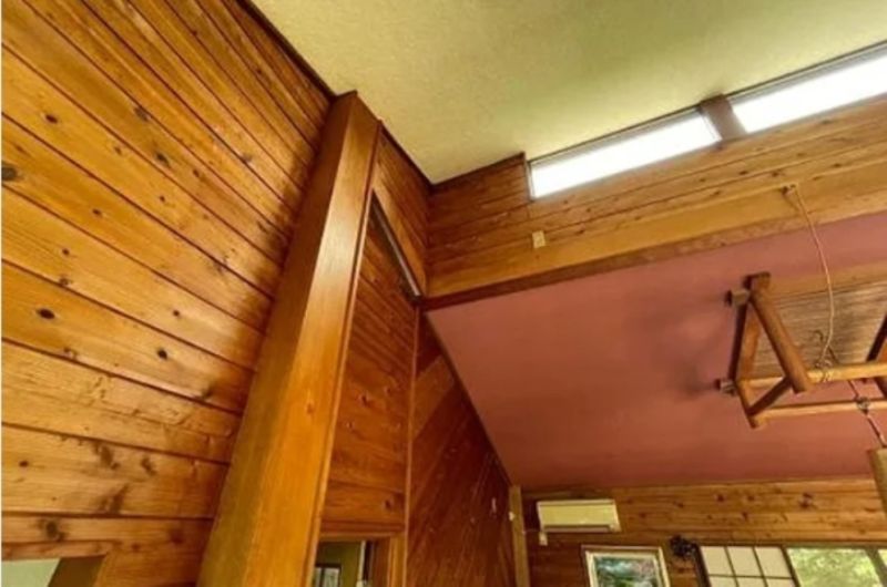 - 〇大きな開口部と天井近くの小窓から自然光が差し込む、明るく開放的な室内。LDKとキッチンは温かみのあるウッド調で統一され、温かみのある室内です。