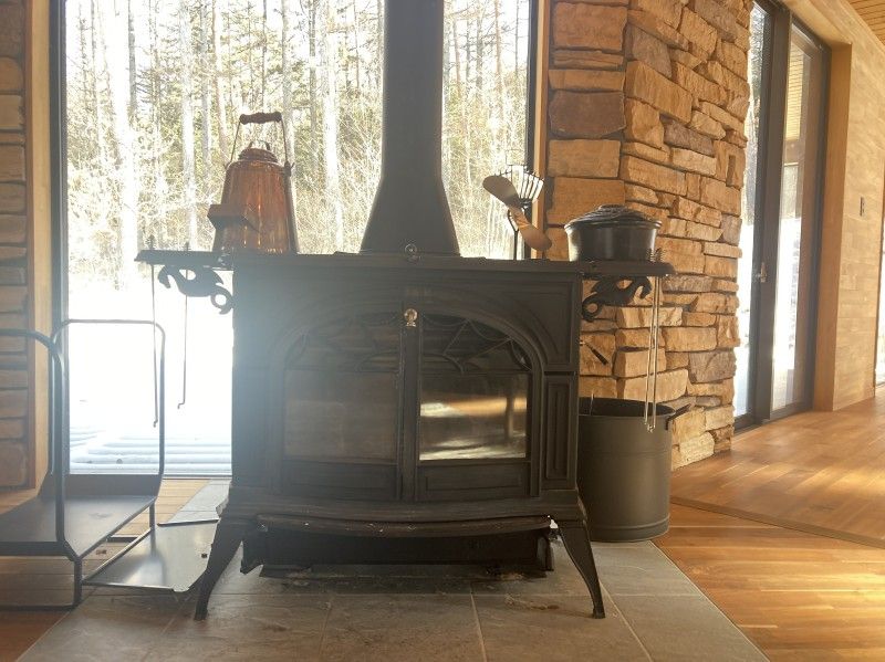 - 〇薪ストーブと露天風呂でゆったりくつろげます