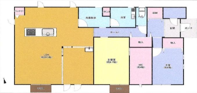 - 〇28.5帖の開放的なLDK+豊富な収納(パントリー・WIC)