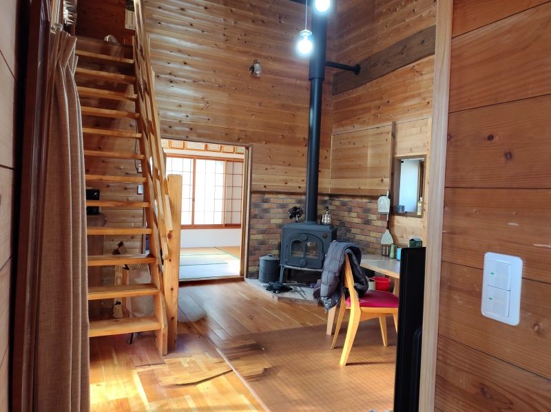 - 〇冬の利用も楽しみになる、薪ストーブあり