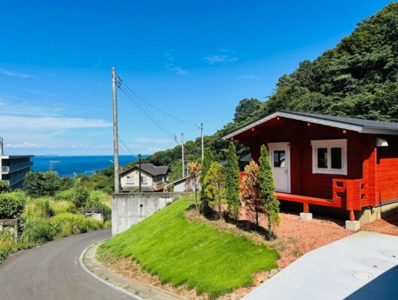 - 静岡県熱海市下多賀。相模湾を一望できるロケーションに建つフィンランドログハウスです。
