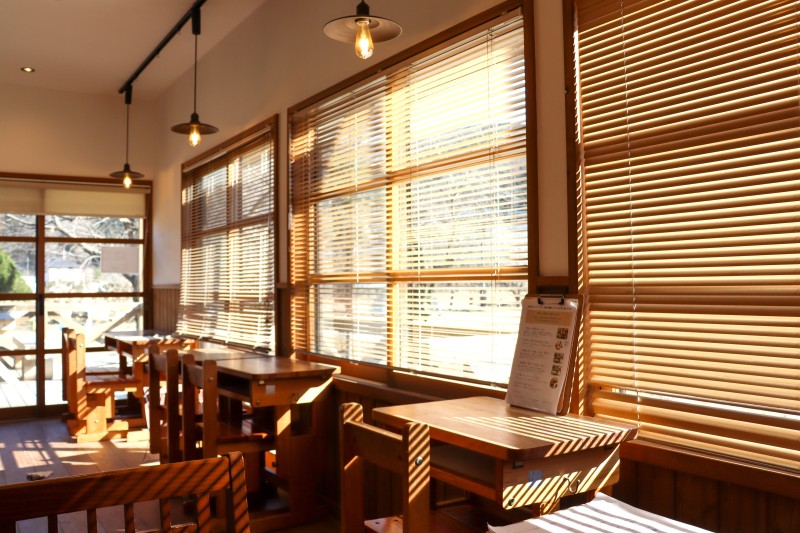 店内に入ってみると、ブラインドを通して入ってくる日の光が良いかんじで、