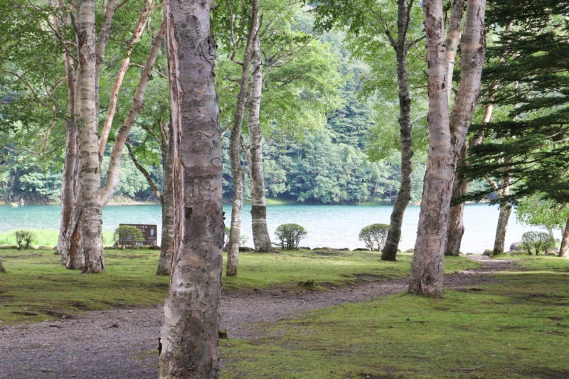 映画の中では「天国の森」と呼ばれていた菅沼湖畔の森。