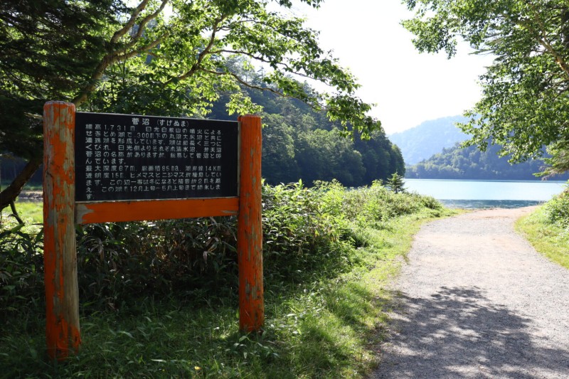丸沼湖畔の遊歩道入り口。