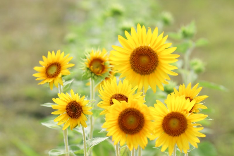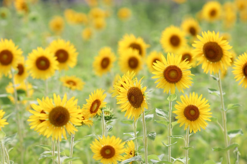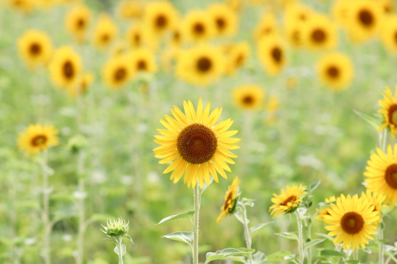 わりと小ぶりなひまわりたちがたくさん咲いていて、可愛らしいですね♡