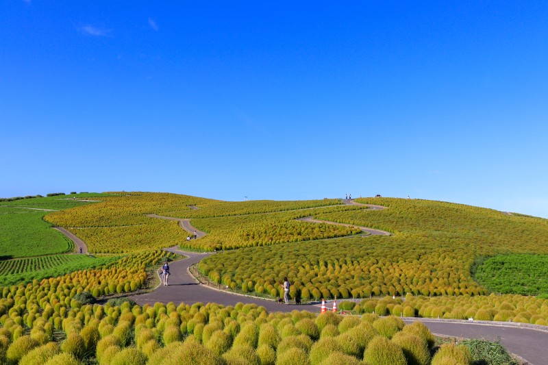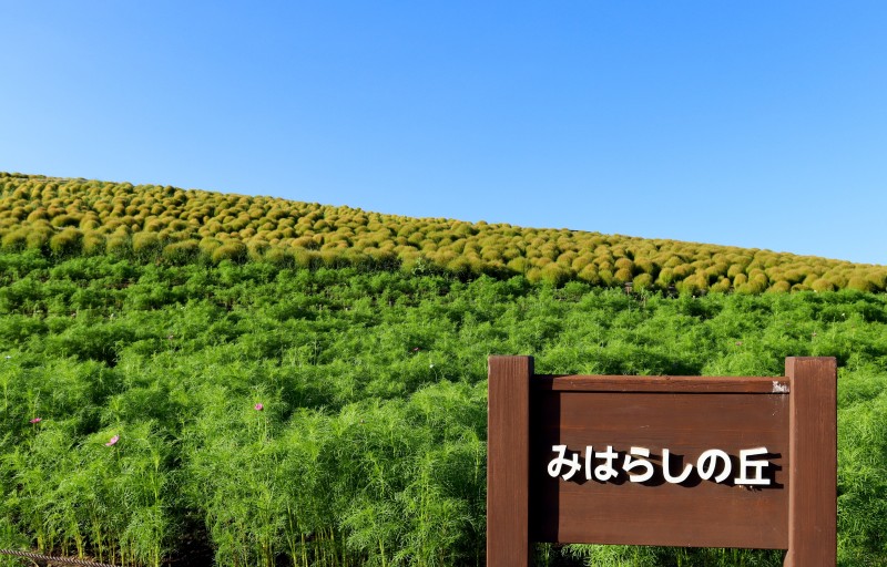 真っ赤なコキアに彩られたみはらしの丘は言うまでもなく絶景ですが、