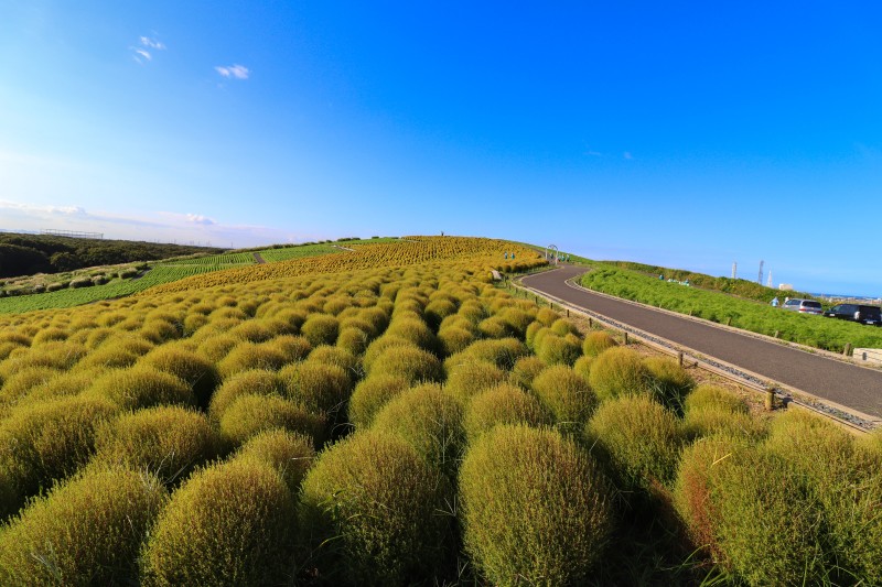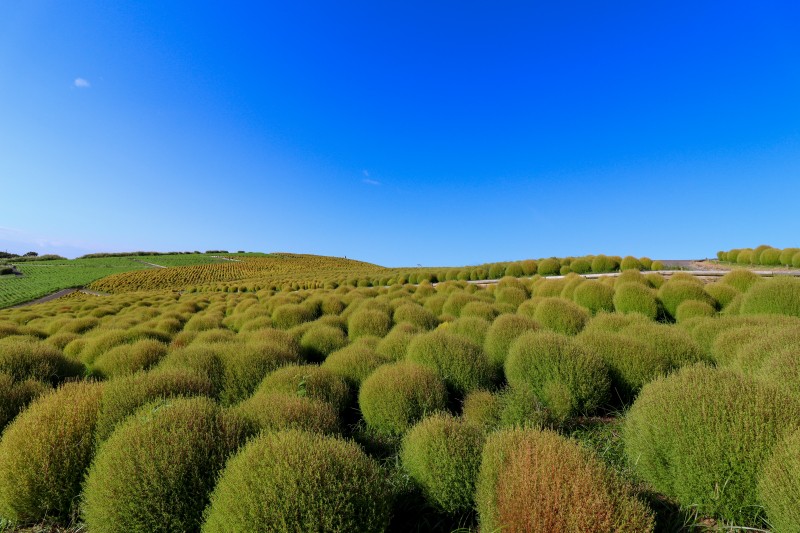 ということで、お出かけ好きなわたくし、本日は紅葉前の緑色のコキアを見るため