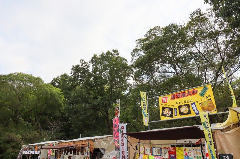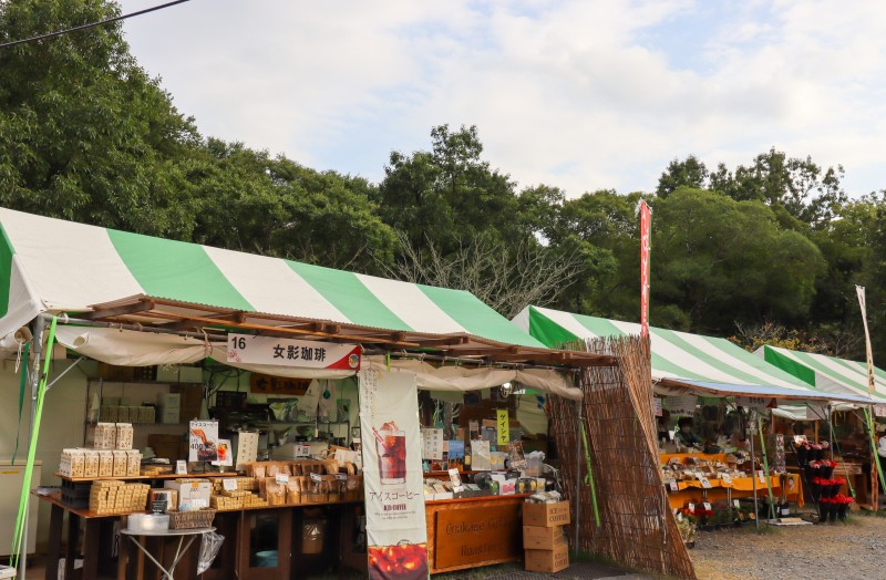 曼珠沙華まつりの期間中は、広場に地元の飲食店や雑貨店がたくさん出店しています。