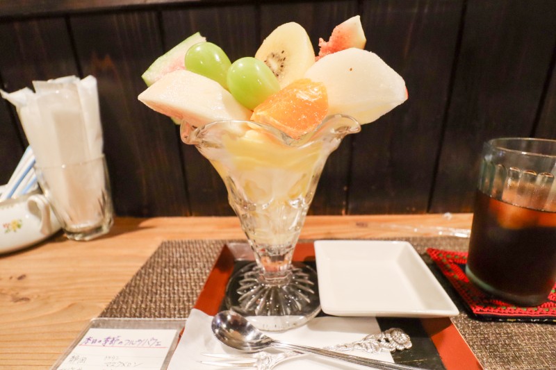 10種類以上のフルーツが贅沢に盛られた「季節のフルーツパフェ」は、