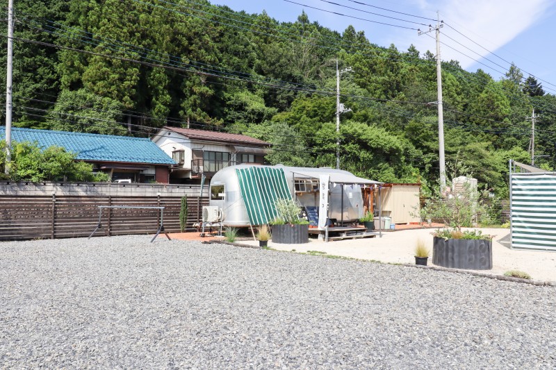 広い駐車場の奥にあるエアストリーム(アメリカのビンテージトレーラー)が店舗となっています。