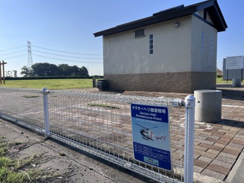 広々とした芝生公園は、ドクターヘリの離着陸場にもなっているようで、