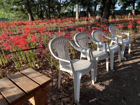 両脇に広がる彼岸花を花を眺めながらゆっくり過ごすことが出来るのが特徴です。