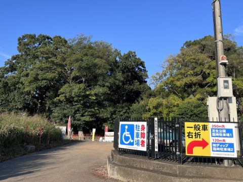公園の目の前にある駐車場は、身体の不自由な方の専用駐車場ですのでご注意ください。