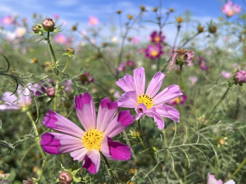 コスモス畑の中に佇むと、まるでコスモスに包まれているようなとても癒される時間が過ごすことができます。