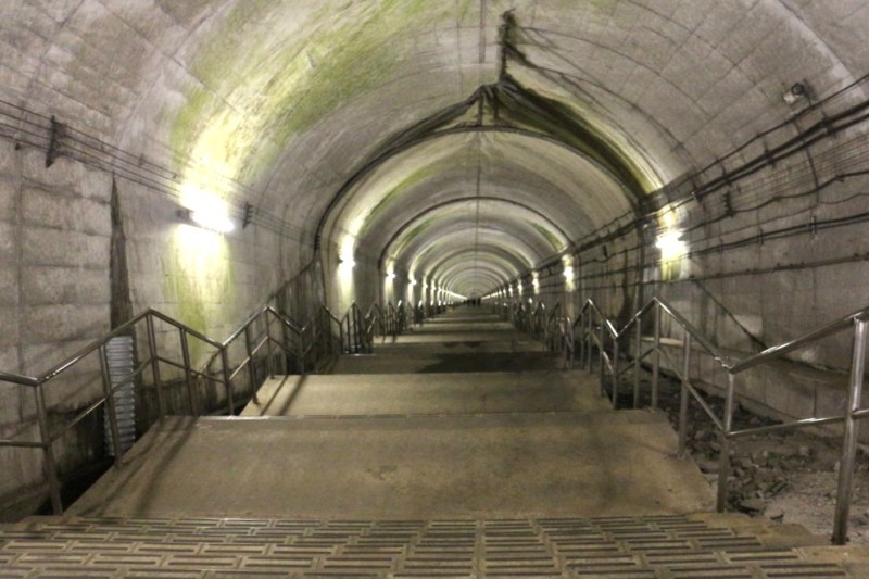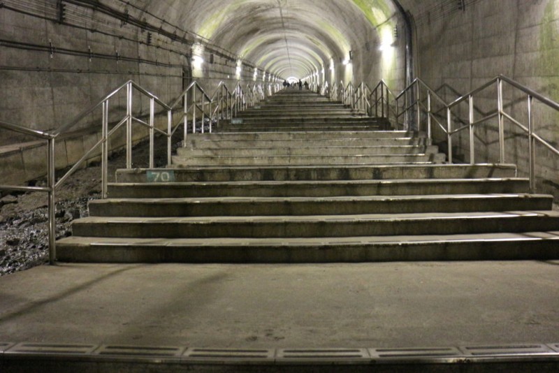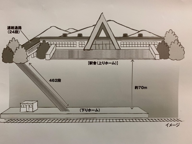 下りホームには462段もの階段をおりなければたどり着けません。