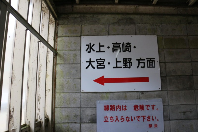 土合駅の上りホームを示す標識には