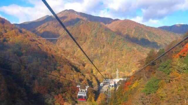 ロープウェイのゴンドラから見える紅葉が既に絶景!