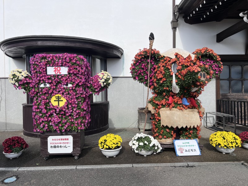 『ながめ公園』の西口から第一会場に入ると、わたらせ渓谷鐡道のマスコットキャラクター「わ鐵のわっしー」とみどりしのマスコットキャラクター「みどモス」がお出迎えをしてくれています。