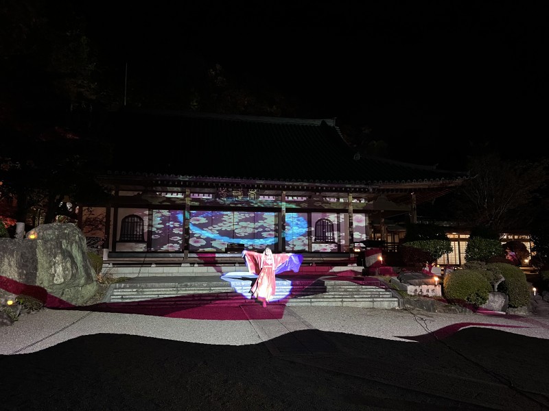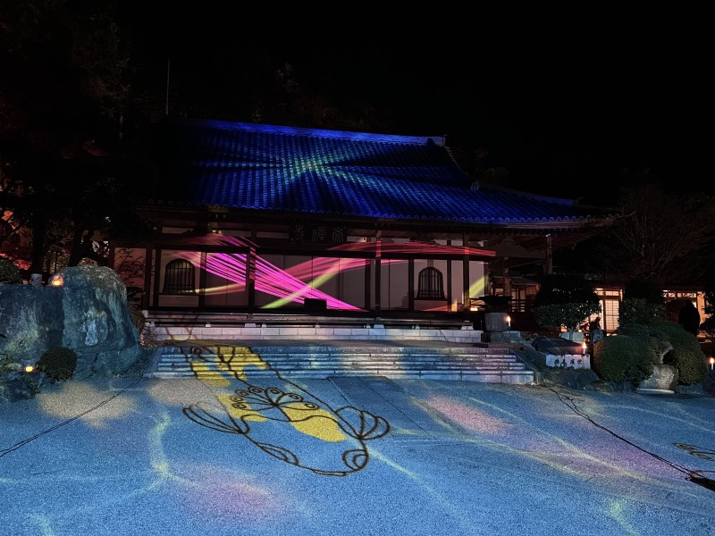 本堂前では、17時45分スタートの第一回目の開演に向け、すでにプロジェクションマッピングが始まっていました。