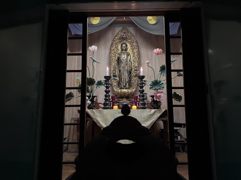 本堂の隣のお茶室からは、上品な琴の音色が響いてきます。