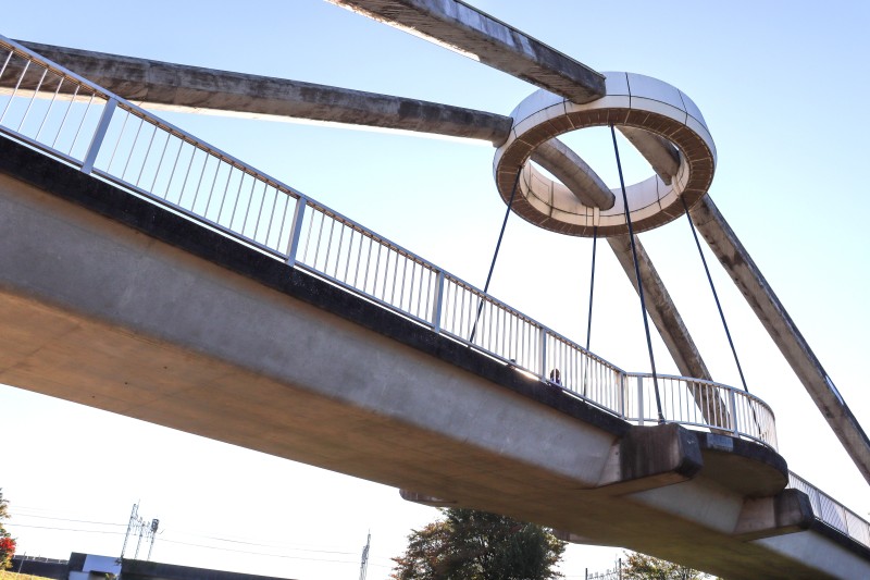 映画のポスターにも使われている、白と赤の配色が印象的な橋は「富士下橋」。