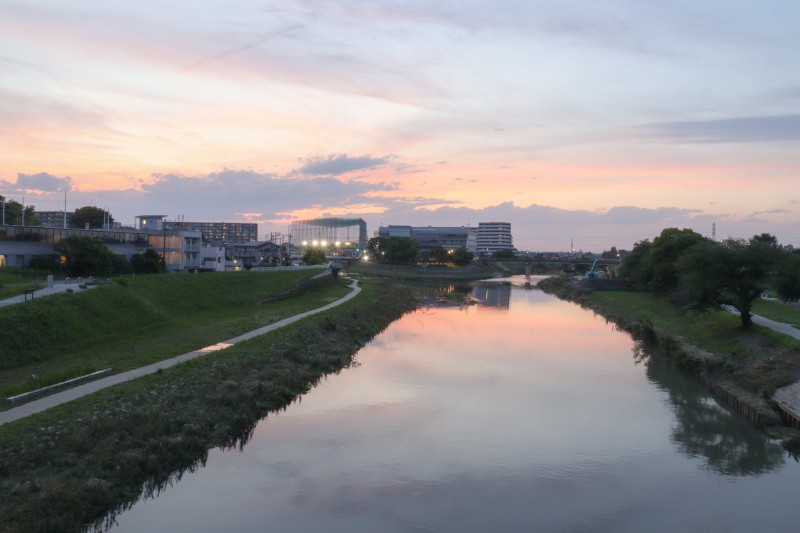 夕方、ピンク色に染まる新河岸川の光景はなかなかにロマンチックですよ♡