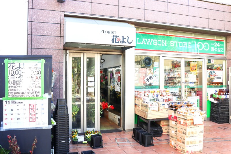 こちらの「花よし」さんは、小説の冒頭部分で「青砥」がお花を物色するお店。