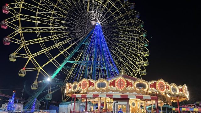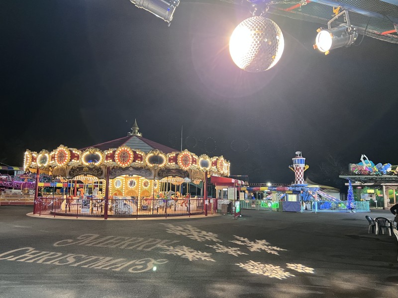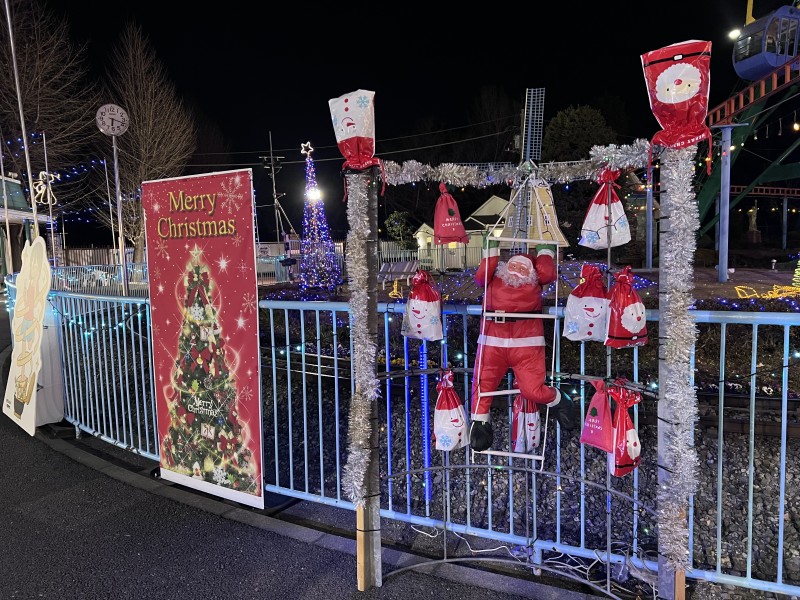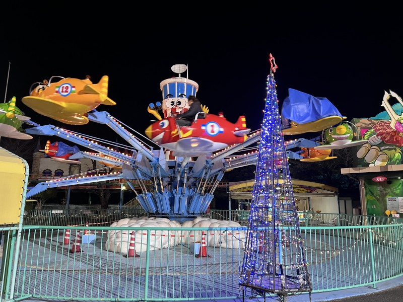 レトロな雰囲気のメリーゴーランドをはじめ、園内のアトラクションがキラキラのクリスマス仕様に変わり、夜21時まで営業しています。