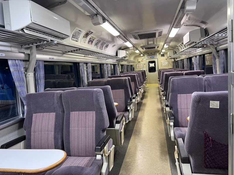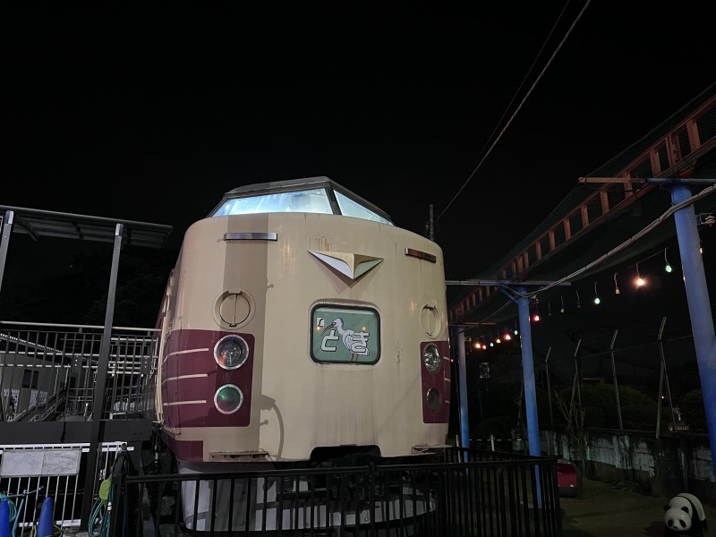 遊園地の片隅に、群馬県と新潟県とつなぐ上越線で走行した特急「とき」が展示されています。