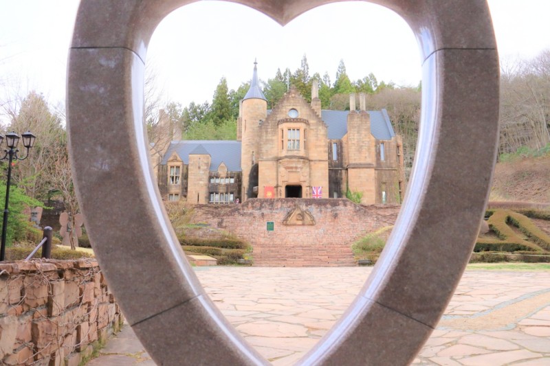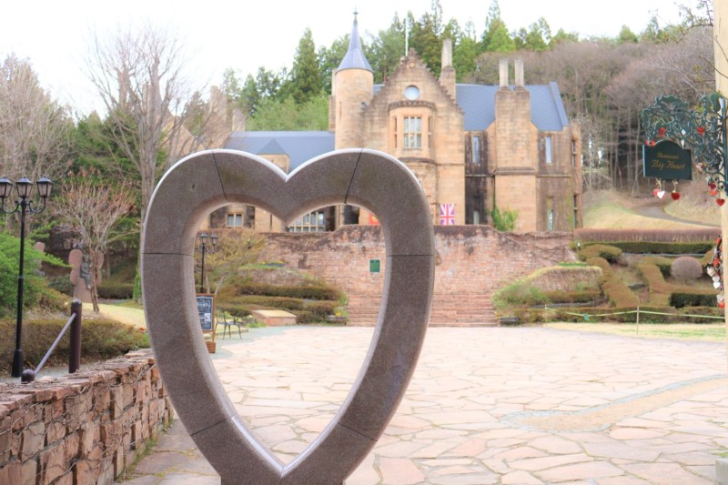 お城の手前にハート型のオブジェがありました。