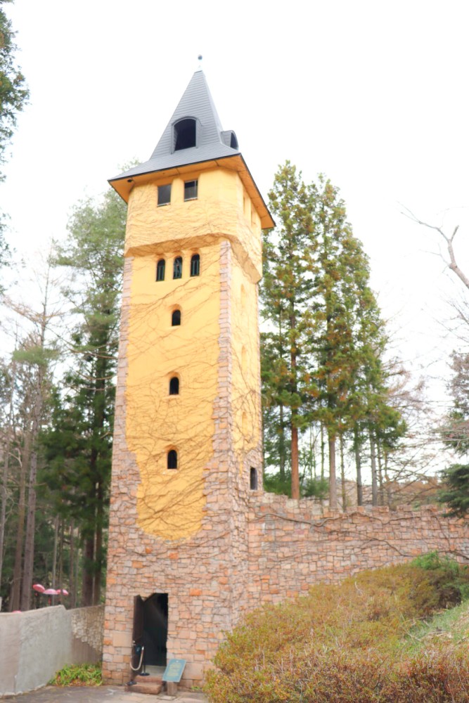 黄色い、高い塔の下に出ました。