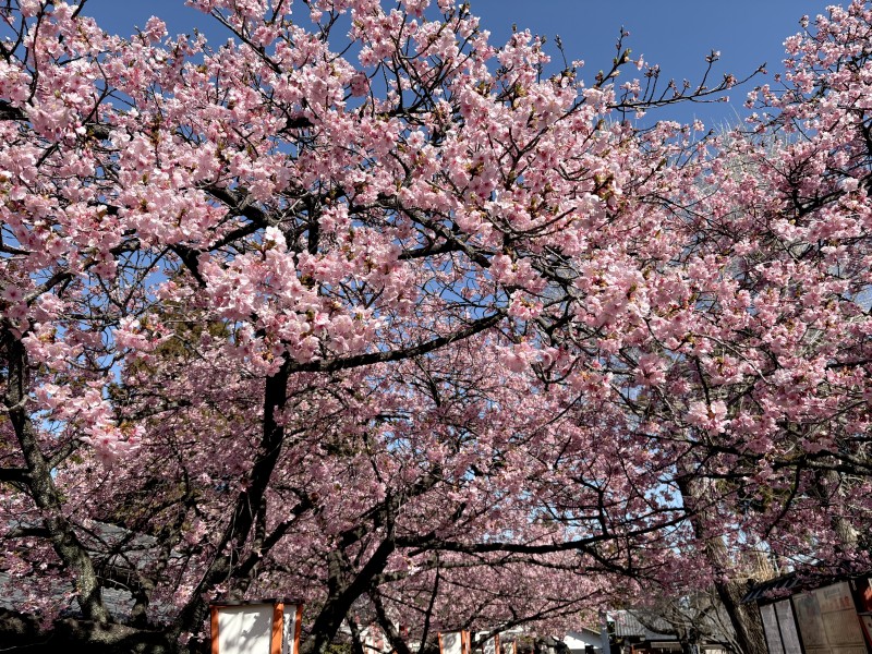 門から続く「河津桜の花のトンネル」は、神社の雰囲気にも良く合って素敵な景色でした。