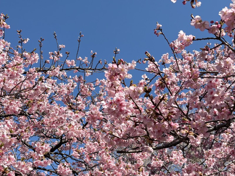 濃いピンク色の花が咲く木」を見つけたら、この時期ほぼ河津桜だと思って間違いないです! 笑